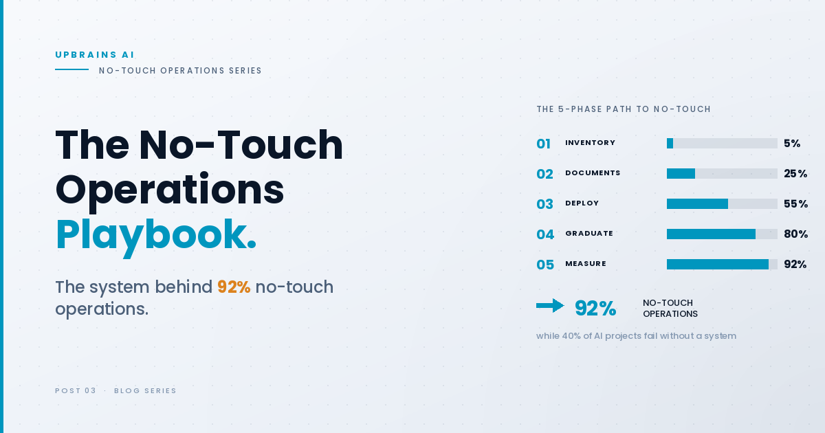 Deploy true agents with a proven implementation system. Target no-touch operations — 90%+ of work processed without human involvement, the remaining work routed to humans with full context — and accept that this requires a different technology category and a different implementation approach than you've used before.