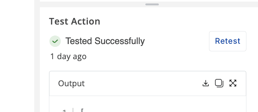 In the test response area, you can inspect the received payload by the trigger. You may click on X to expand the window, download the output or copy it into the clipboard, etc.