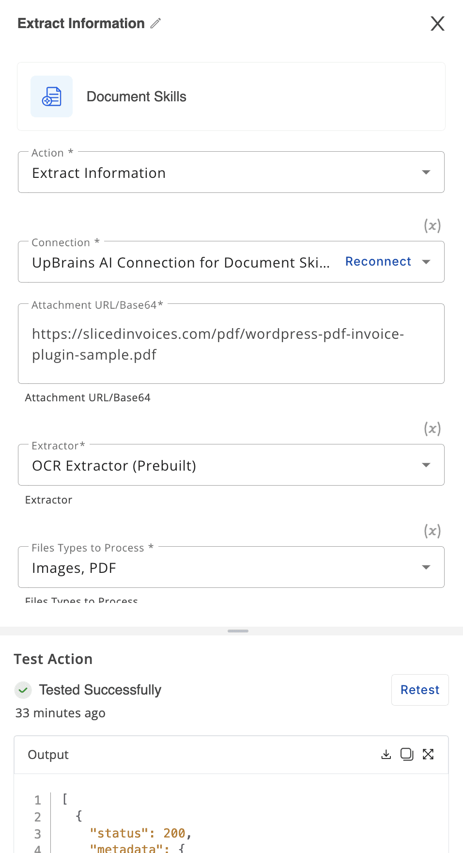Step 4: Extract Text with “Information Extraction” Action