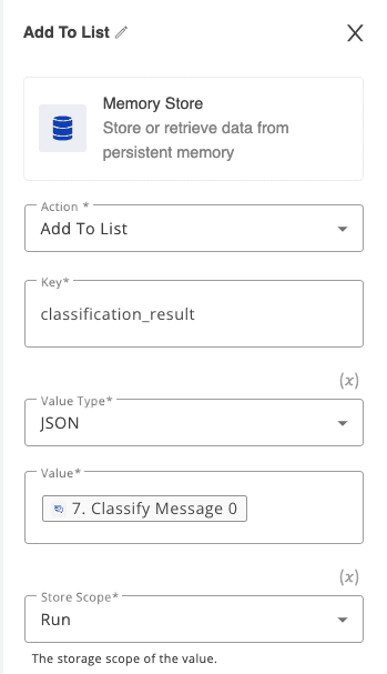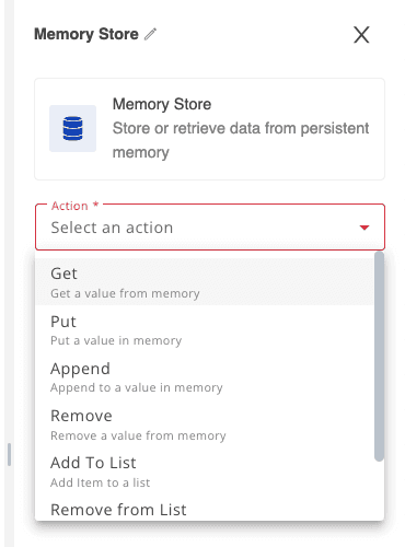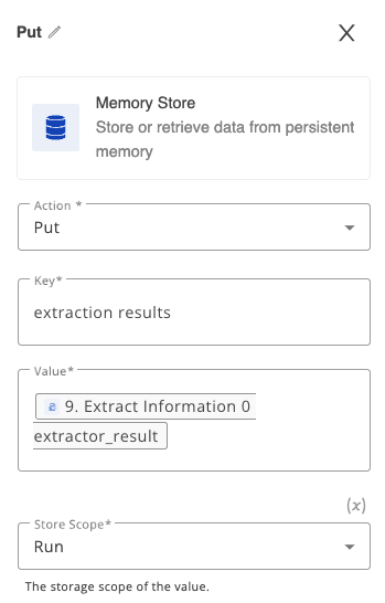 Every step inside an agent run has its own scratch-pad variables, but those variables disappear the moment the step (or run) ends. Memory Store is your agent’s “long-term memory.” It lets you persist information so that: