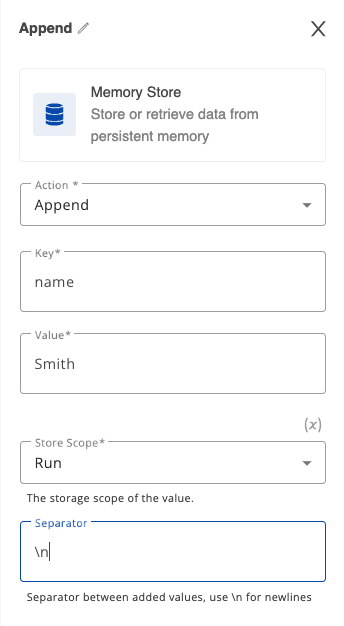 Append | Add text to an existing string key, separated by the Separator you enter. | ![]() |